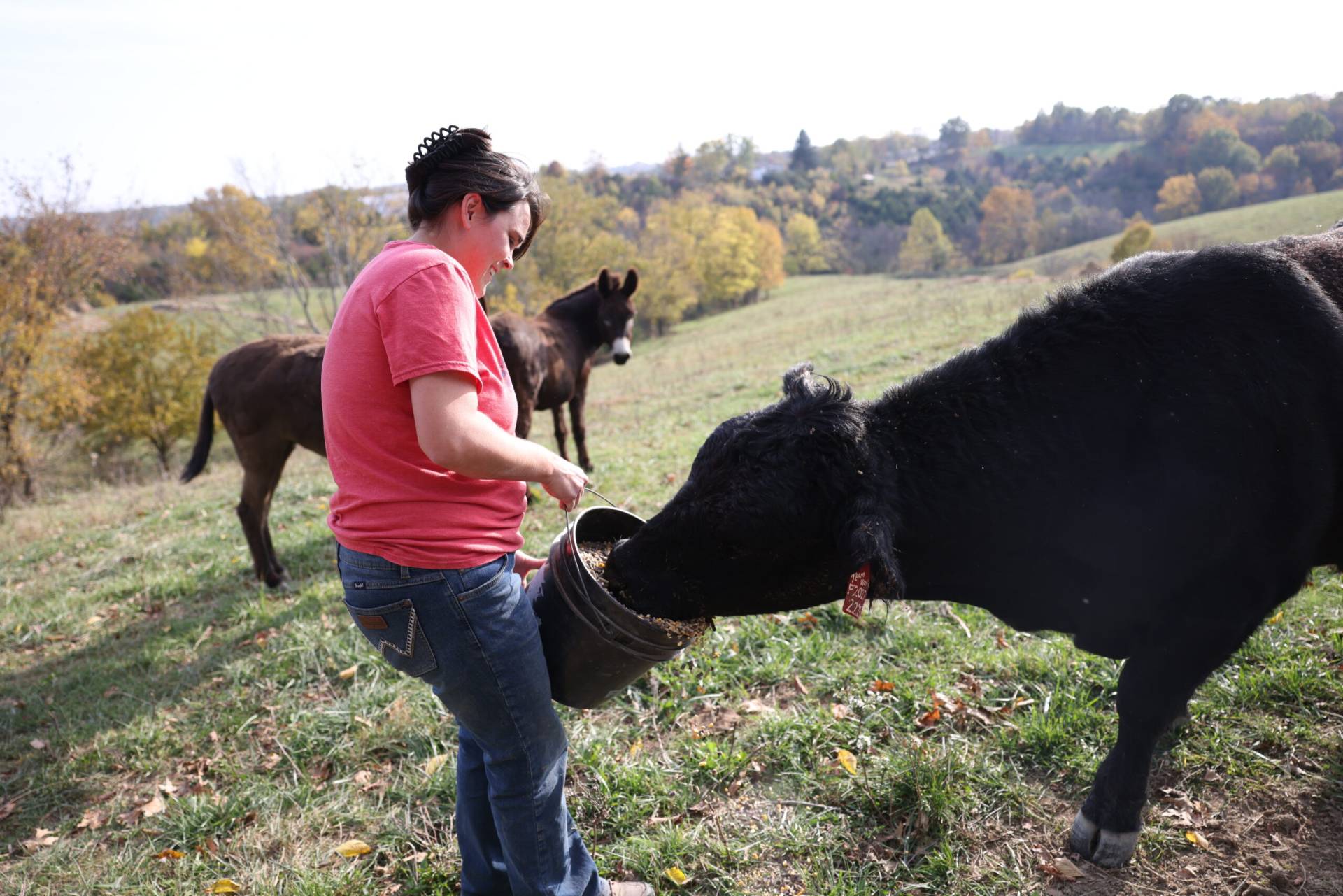 “He bought the farm, I brought the cattle,” Emily said with a laugh while feeding the cattle.