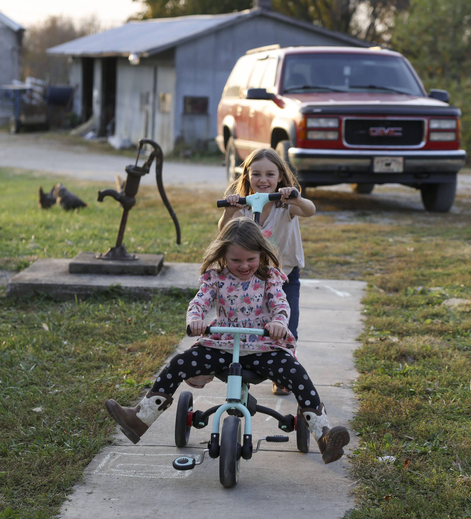 When school is out for the day, the girls head outside to swing, run, and go on “cow adventures” around the property. Climbing trees, running on hay bales, and exploring the woods are also some of the kids’ favorite after-school activities.